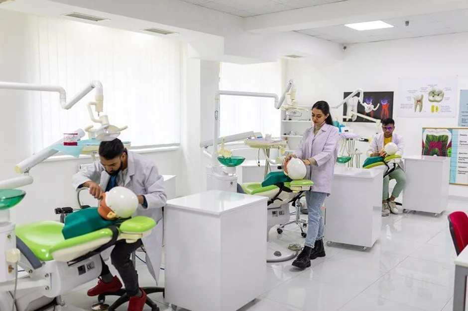 The dentistry program focuses on clinical skills, oral surgery basics, and patient care training. Students are prepared for international dental careers in Europe, GCC, and Asia.